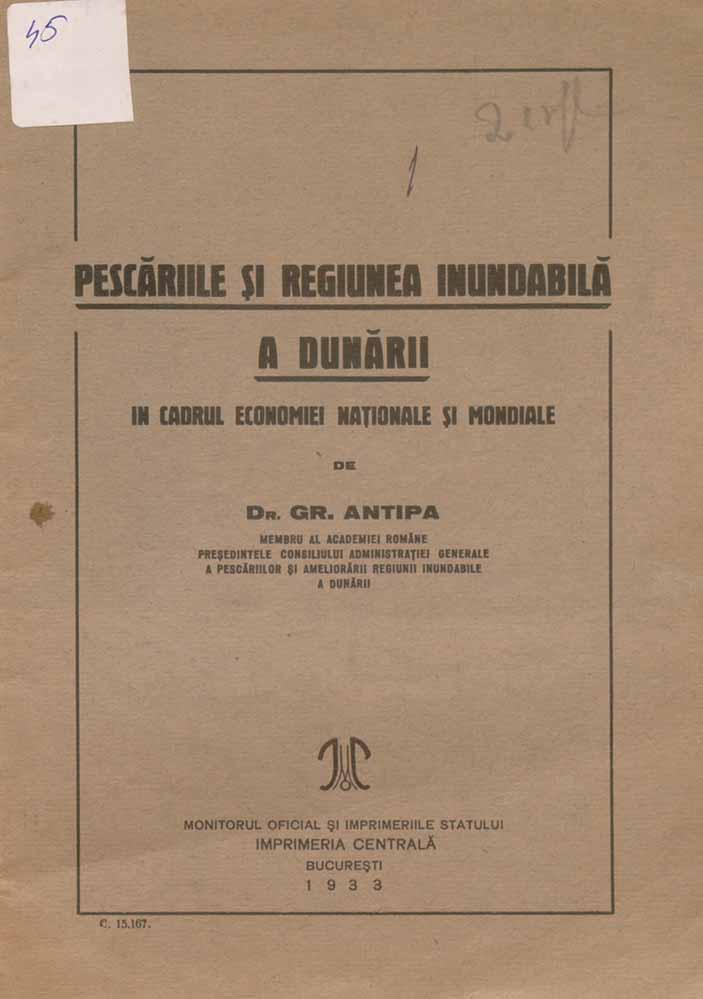 Grigore Antipa (1867-1944), unul dintre cei mai influenți biologi, oceanografi și ecologiști români, a fost un pionier în hidrobiologie, administrarea resurselor naturale și economia piscicolă. Director al Muzeului Național de Istorie Naturală „Grigore Antipa”, a contribuit semnificativ la modernizarea politicilor privind exploatarea durabilă a resurselor acvatice. Această lucrare din 1933 rămâne relevantă pentru studiile de ecologie, economie și politici de mediu, oferind o analiză detaliată asupra regiunii inundabile a Dunării și impactului gestionării piscicole asupra economiei naționale