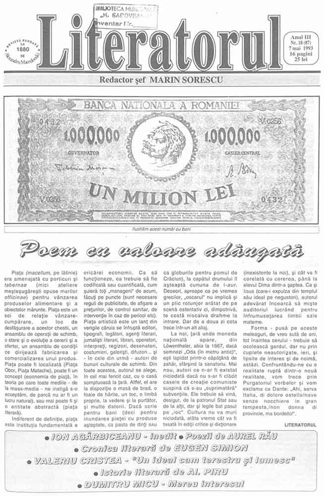 Revista Literatorul fondată de Macedonski a fost continuată într-o serie nouă, în 1991, de către Marin Sorescu. În 2016, revista și-a suspendat, temporar, apariția, din cauza dificultăților financiare. Și-a reluat apariția, în noiembrie 2017, avându-l ca redactor șef pe scriitorul Nicolae Iliescu. Din decembrie 2018, revista Literatorul, aflată sub egida Bibliotecii Metropolitane București, este condusă de un nou redactor-șef Elena Boholț.