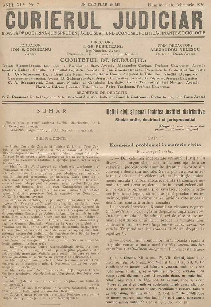 Curierul Judiciar, nr. în TOM: 7, 16 februarie, 1936 info Descriere × DOCTRINĂ - JURISPRUDENȚĂ - LEGISLAȚIUNE - ECONOMIE POLITICĂ - FINANȚE Descarcă Citește × --> Anul publicației: 1936 Nr. total: XLV Contributori: Institutul de Istorie „Nicolae Iorga” București Tipul publicației: periodic Vezi publicația: Curierul Judiciar Domenii asociate: Istorie, Justiție