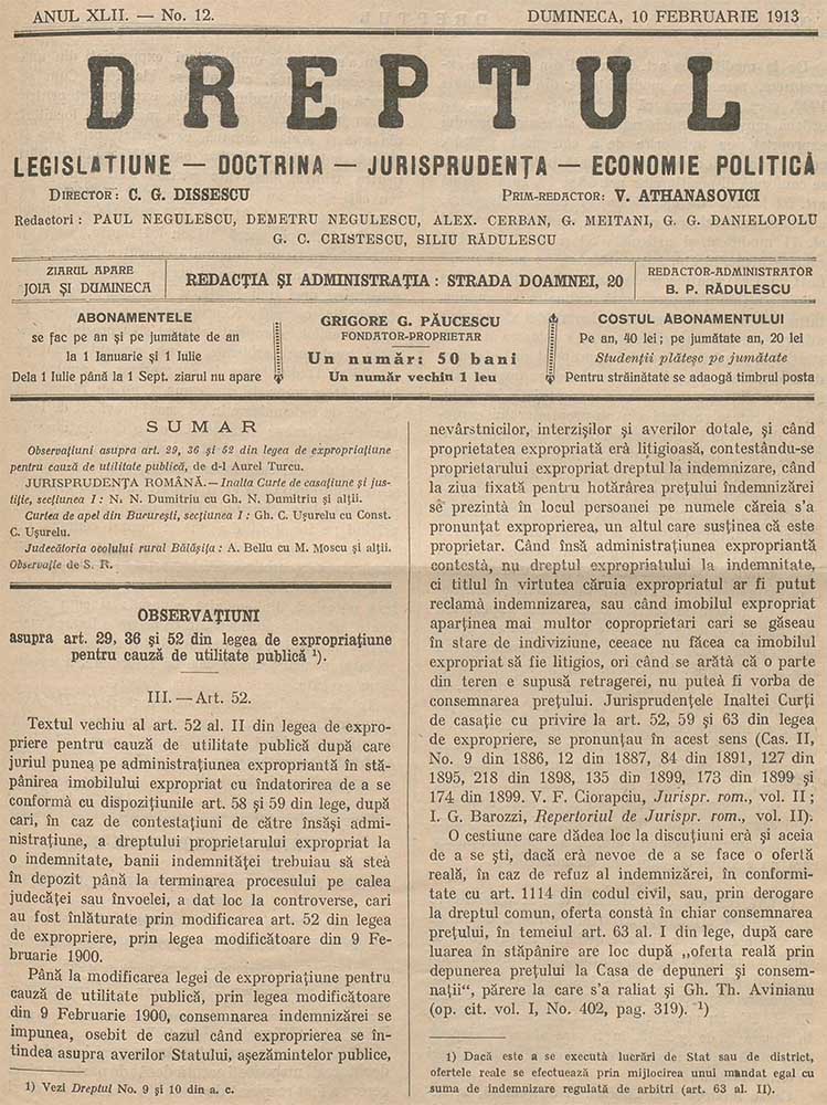 Dreptul, XLII, nr. în TOM: 12, 10 februarie, 1913 Descarcă Citește × --> Anul publicației: 1913 Publicată de: Institutul de Istorie „Nicolae Iorga” București Contributori: Institutul de Istorie „Nicolae Iorga” București Tipul publicației: periodic Vezi publicația: Dreptul Domenii asociate: Drept, Științe juridice