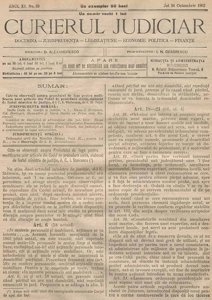 Curierul Judiciar, nr. în TOM: 69, 24 octombrie, 1902