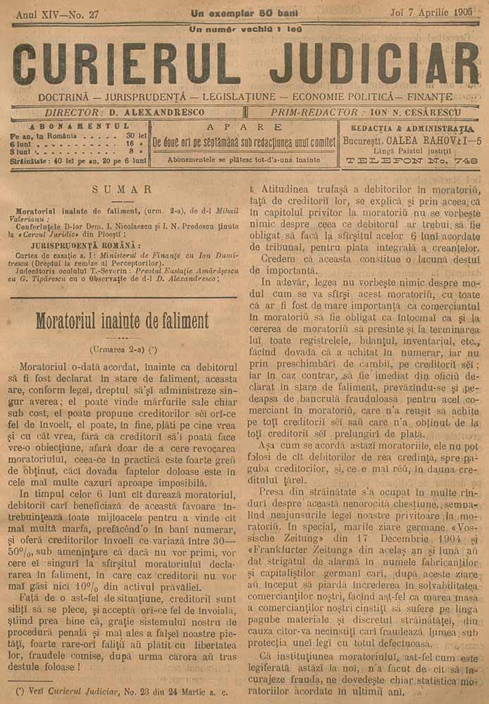 Curierul Judiciar, nr. în TOM: 27, 7 aprilie, 1905 info Descriere × DOCTRINĂ - JURISPRUDENȚĂ - LEGISLAȚIUNE - ECONOMIE POLITICĂ - FINANȚE Descarcă Citește × --> Anul publicației: 1905 Nr. total: XIV Contributori: Institutul de Istorie „Nicolae Iorga” București Tipul publicației: periodic Vezi publicația: Curierul Judiciar Domenii asociate: Istorie, Justiție
