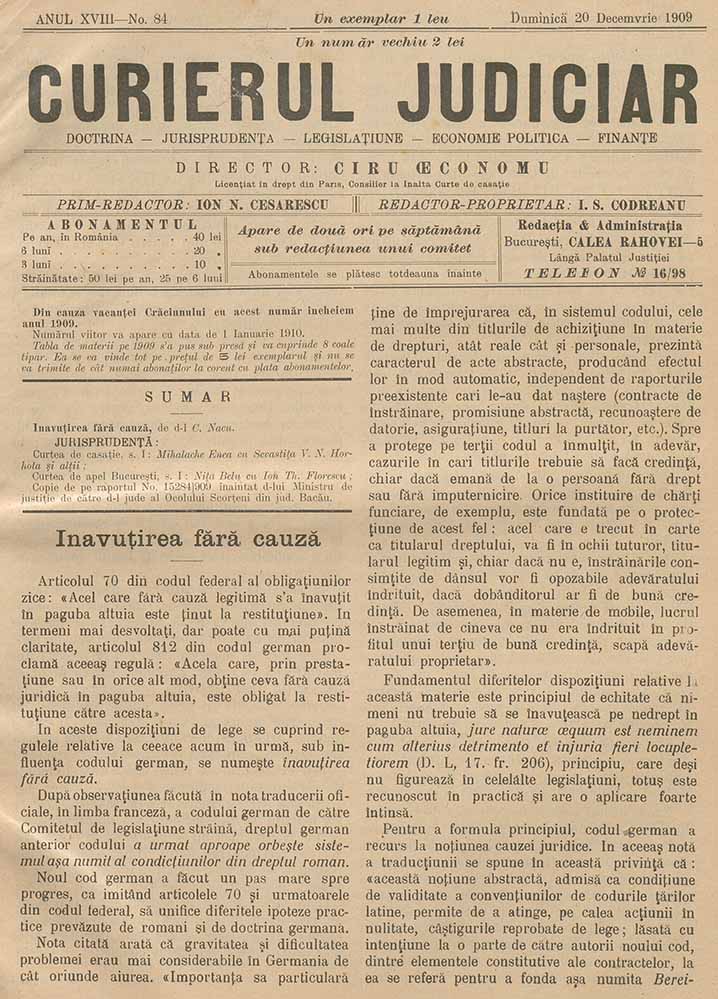 Curierul Judiciar, nr. în TOM: 84, 20 decembrie, 1909