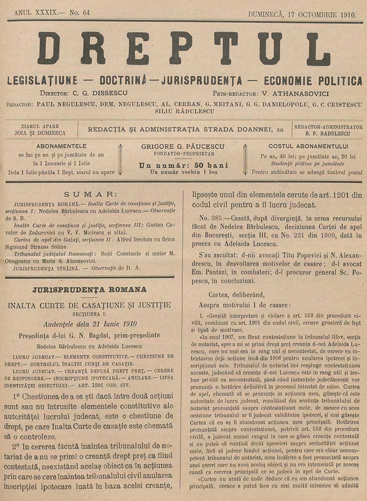 Dreptul, XXXIX, nr. în TOM: 64, 17 octombrie, 1910 Descarcă Citește × --> Anul publicației: 1910 Publicată de: Institutul de Istorie „Nicolae Iorga” București Contributori: Institutul de Istorie „Nicolae Iorga” București Tipul publicației: periodic Vezi publicația: Dreptul Domenii asociate: Drept, Științe juridice