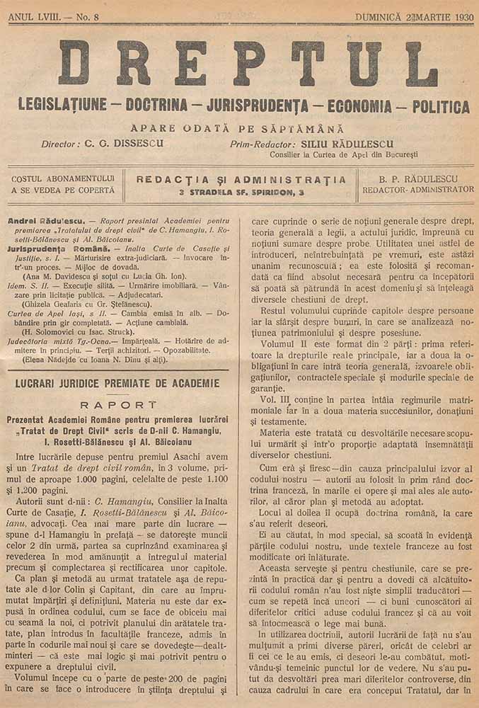 Dreptul, LVIII, nr. în TOM: 8, 2 martie, 1930 Descarcă Citește × --> Anul publicației: 1930 Publicată de: Institutul de Istorie „Nicolae Iorga” București Contributori: Institutul de Istorie „Nicolae Iorga” București Tipul publicației: periodic Vezi publicația: Dreptul Domenii asociate: Drept, Științe juridice