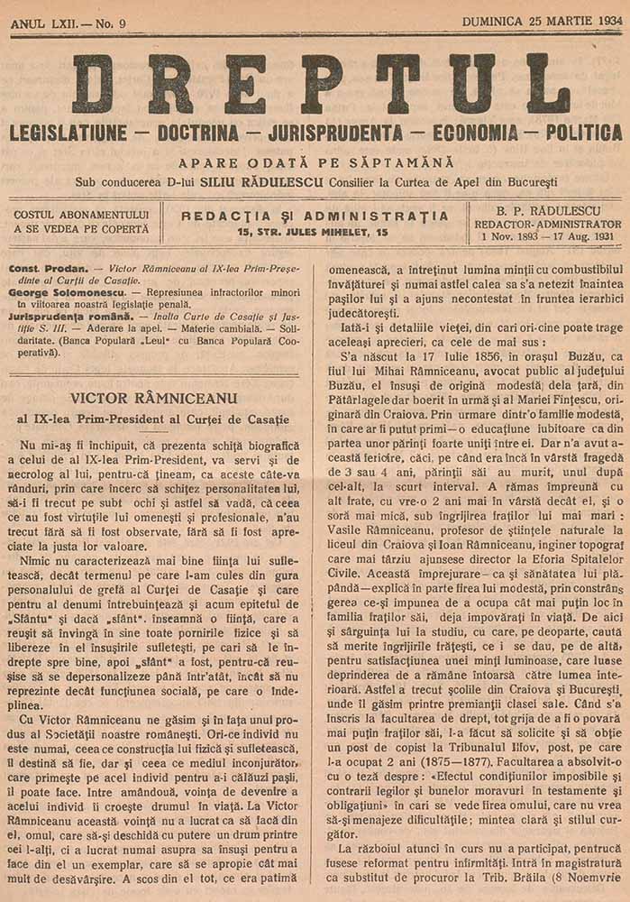 Dreptul, LXII, nr. în TOM: 9, 25 martie, 1934 Descarcă Citește × --> Anul publicației: 1934 Publicată de: Institutul de Istorie „Nicolae Iorga” București Contributori: Institutul de Istorie „Nicolae Iorga” București Tipul publicației: periodic Vezi publicația: Dreptul Domenii asociate: Drept, Științe juridice