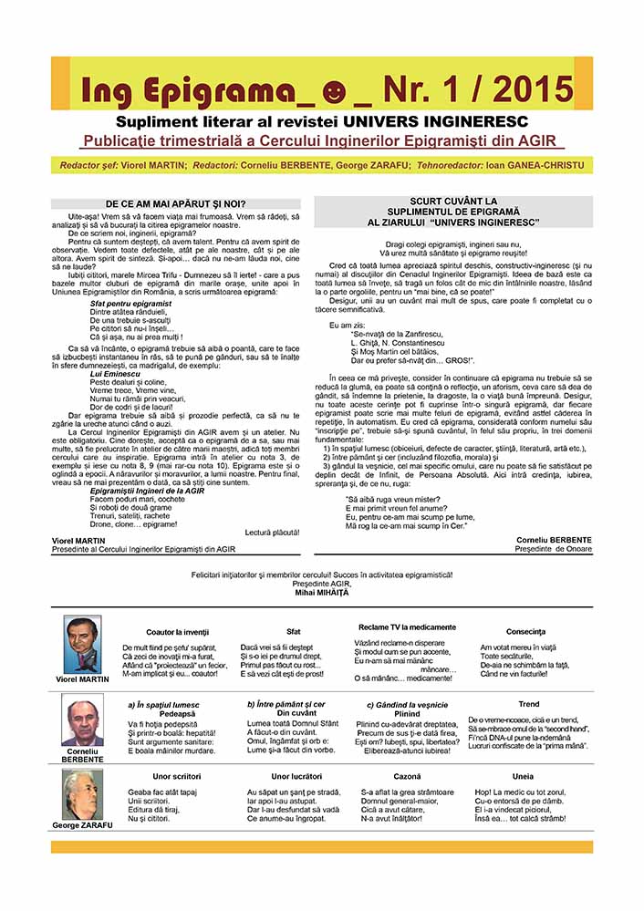 Univers ingineresc, I, nr. în TOM: 1, 2015, Supliment literar al revistei Univers Ingineresc
