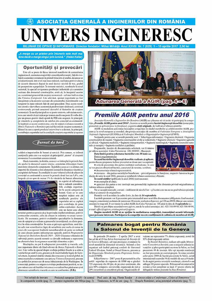 Univers ingineresc, XXVIII, nr. în TOM: 7, 2017