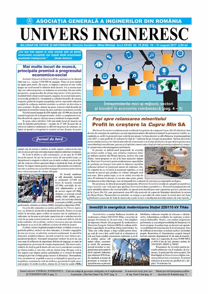 Univers ingineresc, XXVIII, nr. în TOM: 16, 2017
