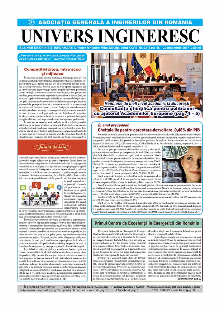 Univers ingineresc, XXVIII, nr. în TOM: 22, 2017
