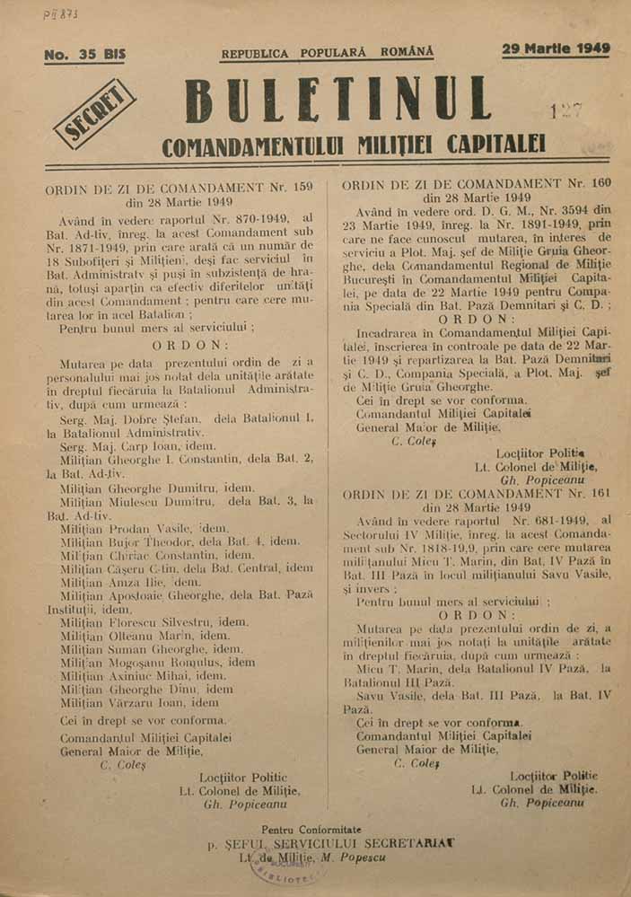Buletinul Comandamentului Miliției Capitalei, 35bis, 29 martie 1949, 1949