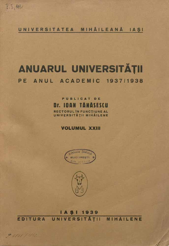 Anuarul Universității din Iași, 1939, Anul Academic 1937-1938