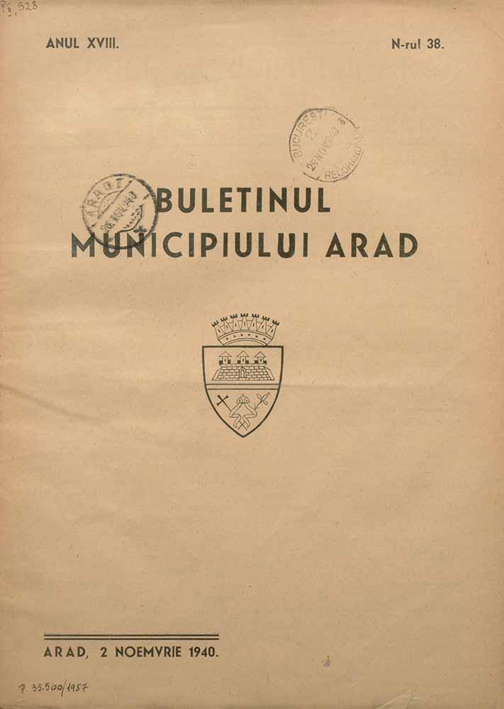 Buletinul Municipiului Arad, XVIII, nr. în TOM: 38, 2 noiembrie, 1940