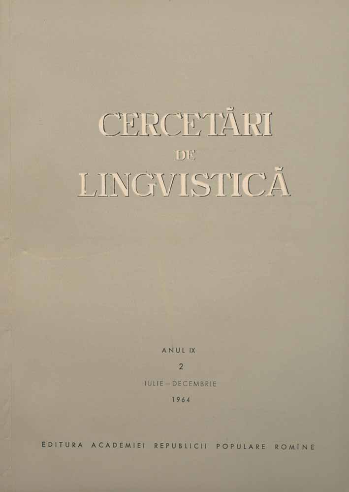 Cercetări de lingvistică, IX, nr. în TOM: 2, iulie-decembrie, 1964
