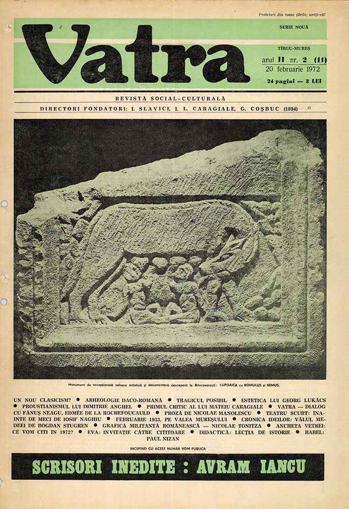 Vatra, 11, nr. în TOM: 2, februarie, 1972, SCRISORI INEDITE: AVRAM IANCU