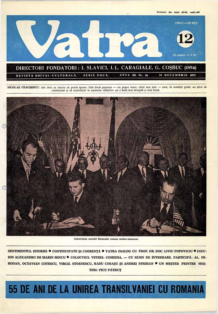 Vatra, 33, nr. în TOM: 12, decembrie, 1973, 55 DE ANI DE LA UNIREA TRANSILVANIEI CU ROMANIA
