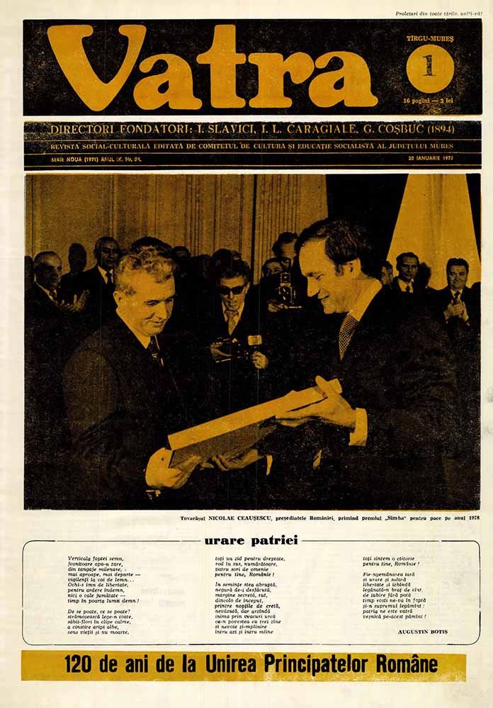 Vatra, 94, nr. în TOM: 1, ianuarie, 1979, 120 de ani de la Unirea Principatelor Române