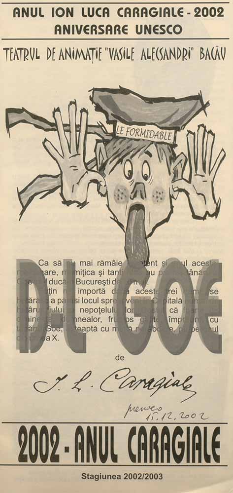 - Descriptori asociați: Atila Vizauer, caiet de spectacol, caiet program, Ion Luca Caragiale, Mihai Pastramagiu, piesă de teatru, Teatrul de Animație „Vasile Alecsandri" Bacău, Teatrul Municipal George Bacovia Bacău