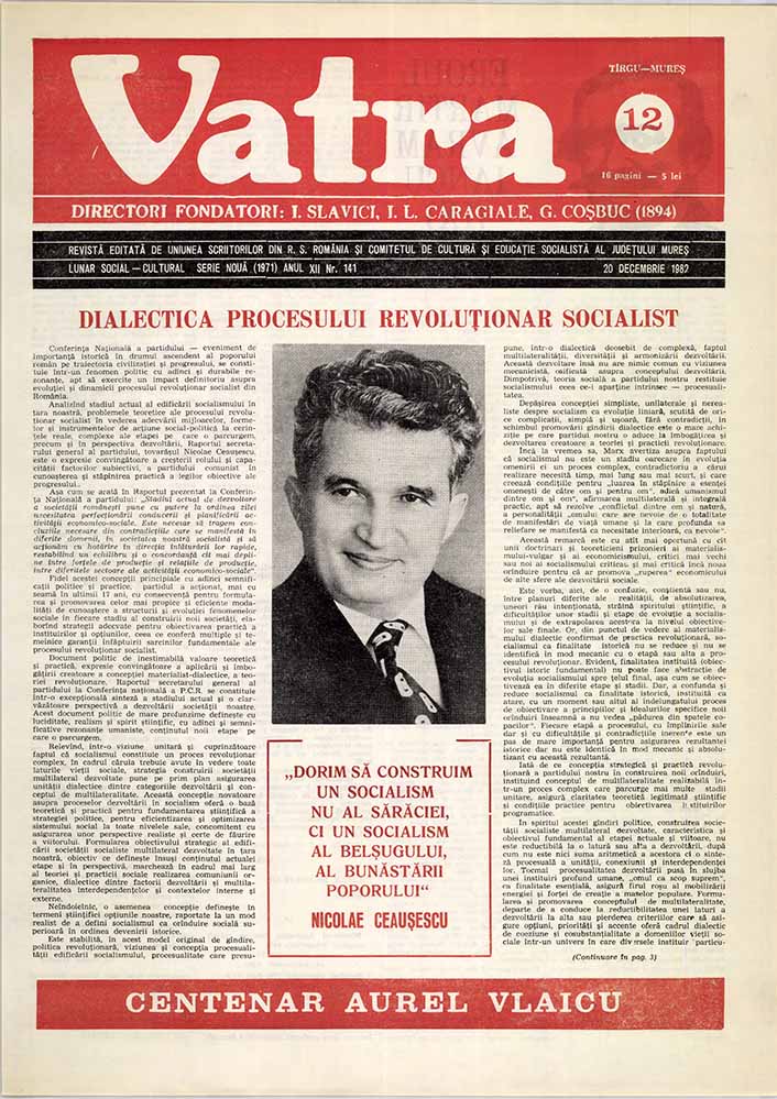 Vatra, 141, nr. în TOM: 12, decembrie, 1982, CENTENAR AUREL VLAICU