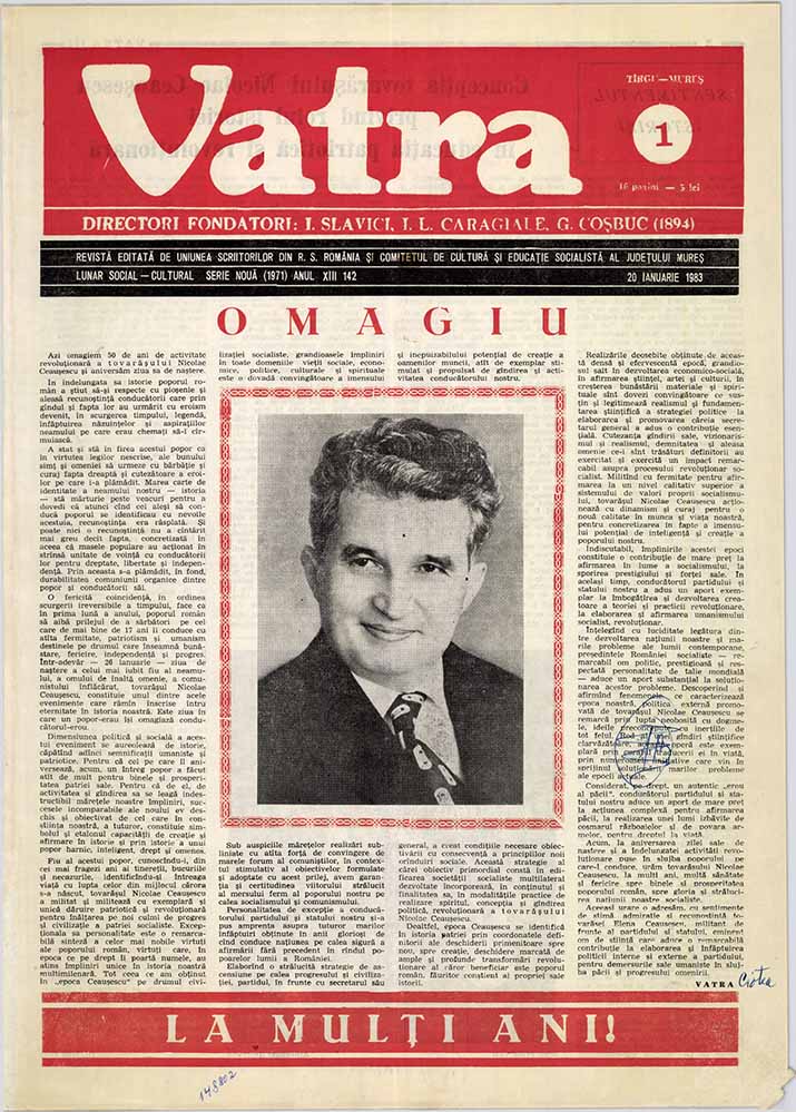 Vatra, 142, nr. în TOM: 1, ianuarie, 1983, La mulți ani!