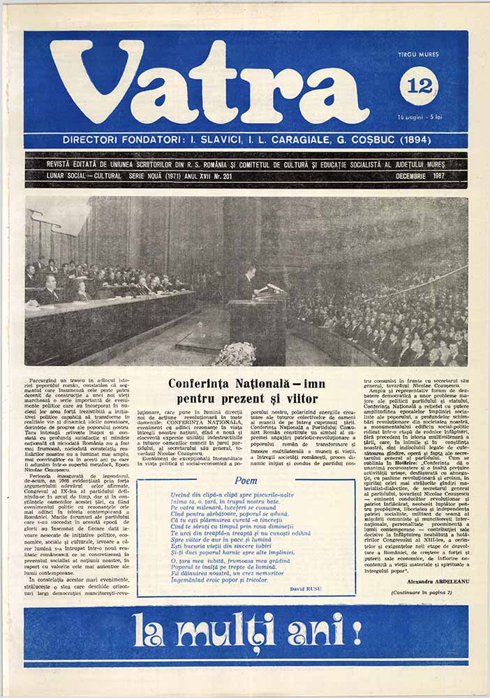 Vatra, 201, nr. în TOM: 12, decembrie, 1987, la mulți ani!