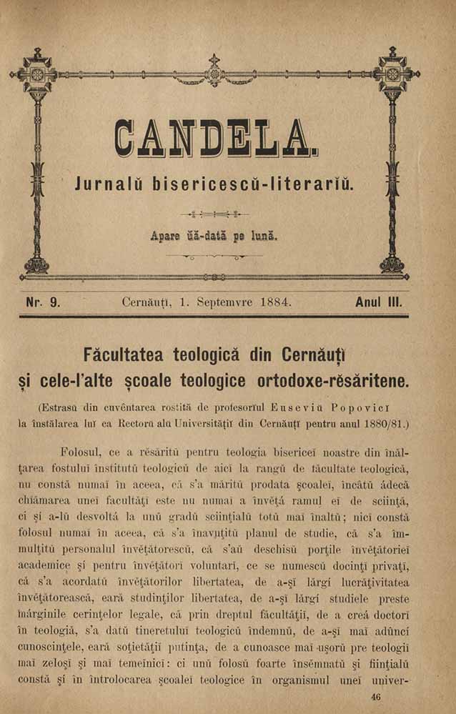 Candela, III, nr. în TOM: 9, septembrie, 1884, Jurnalu bisericescu-literariu