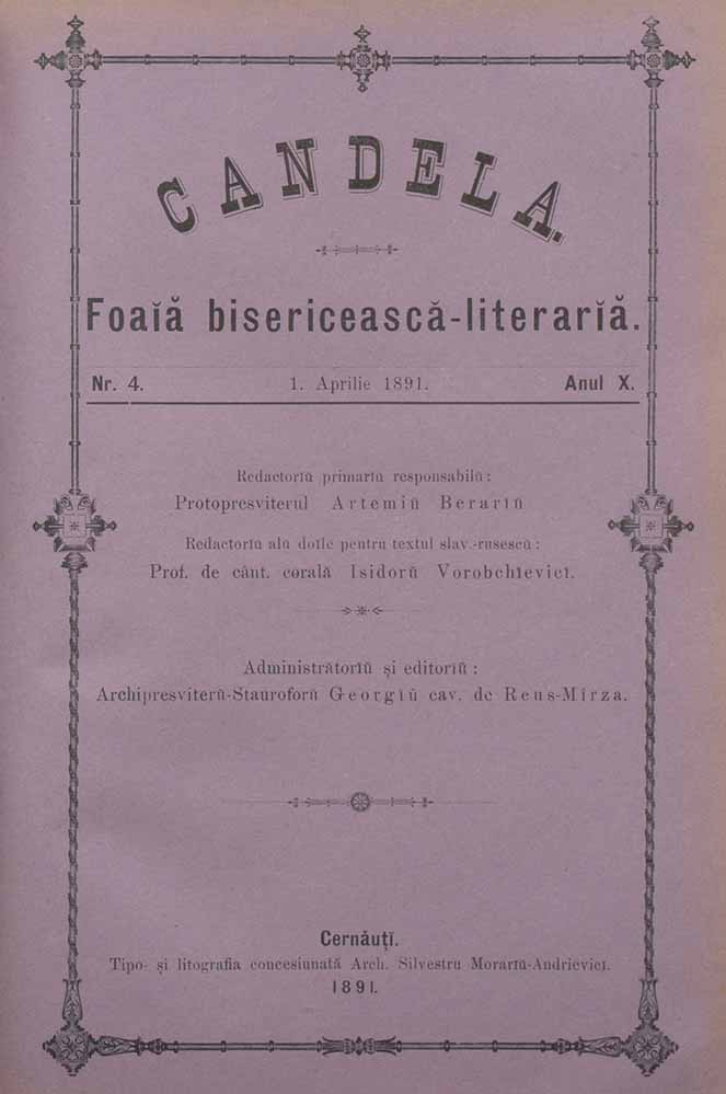 Candela, X, nr. în TOM: 4, aprilie, 1891, Foaiă bisericească-literariă