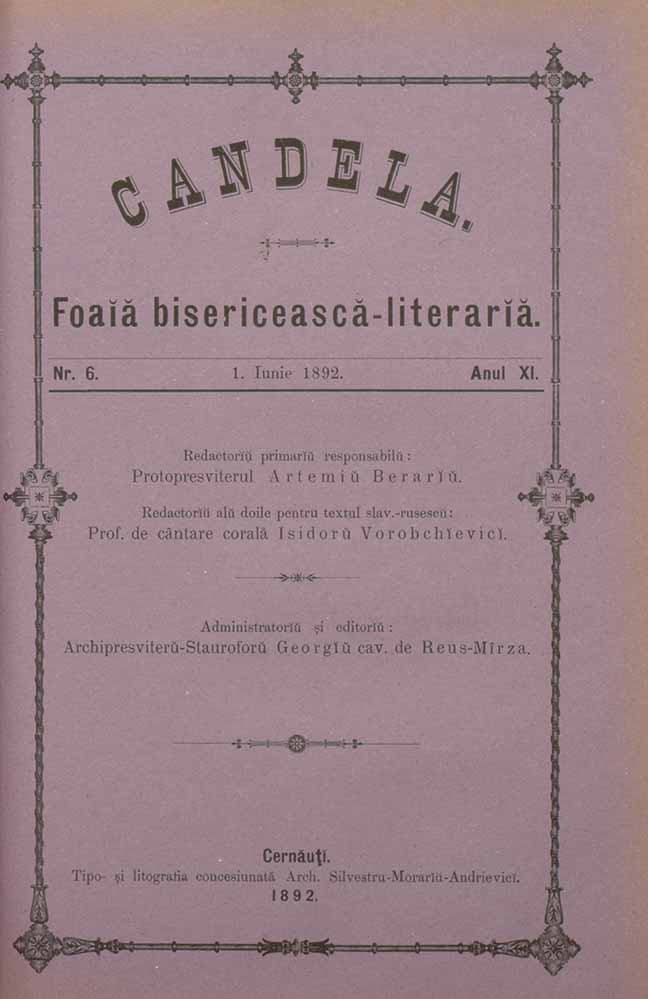 Candela, XI, nr. în TOM: 6, iunie, 1892, Foaiă bisericească-literariă