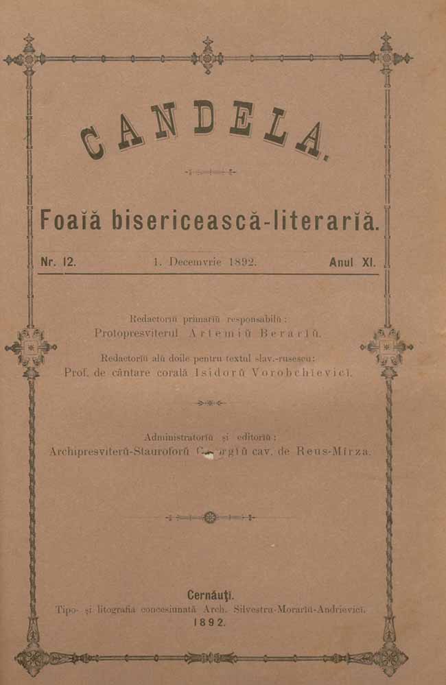 Candela, XI, nr. în TOM: 12, decembrie, 1892, Foaiă bisericească-literariă