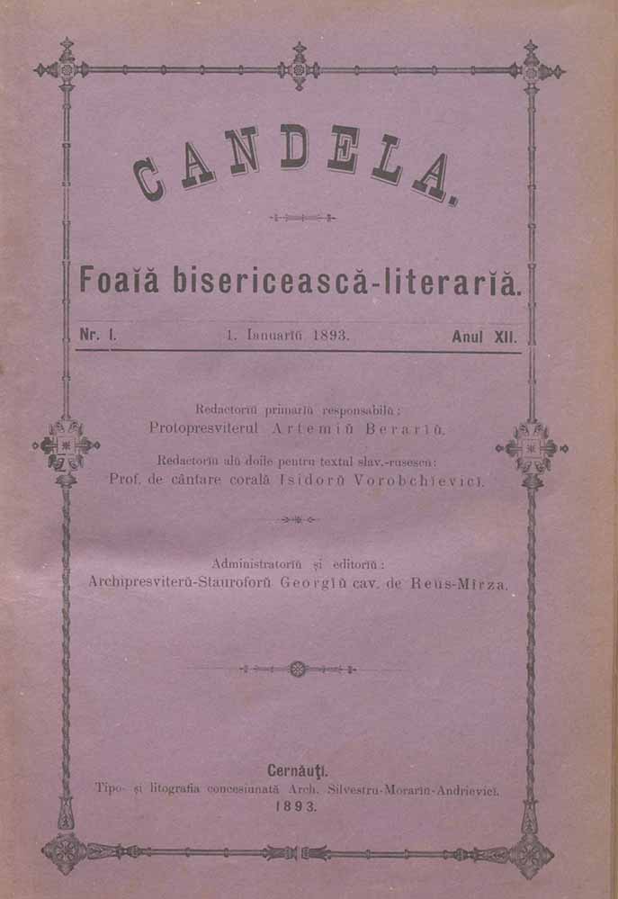 Candela, XII, nr. în TOM: 1, ianuarie, 1893, Foaiă bisericească-literariă