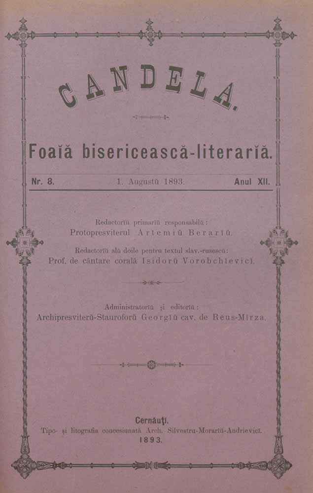 Candela, XII, nr. în TOM: 8, august, 1893, Foaiă bisericească-literariă