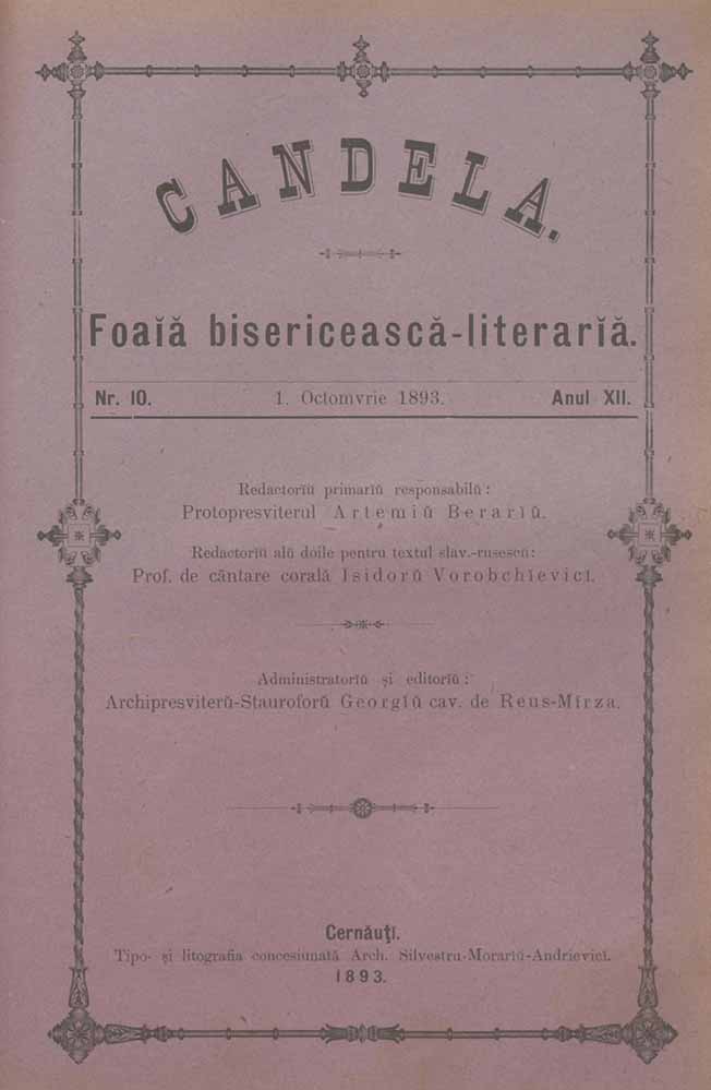 Candela, XII, nr. în TOM: 10, octombrie, 1893, Foaiă bisericească-literariă