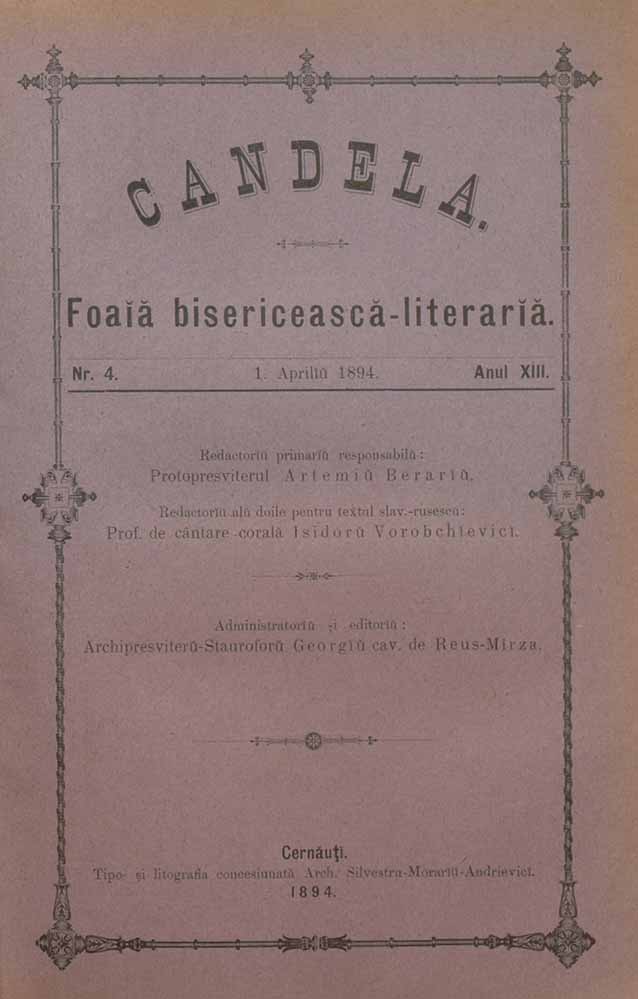 Candela, XIII, nr. în TOM: 4, aprilie, 1894, Foaiă bisericească-literariă