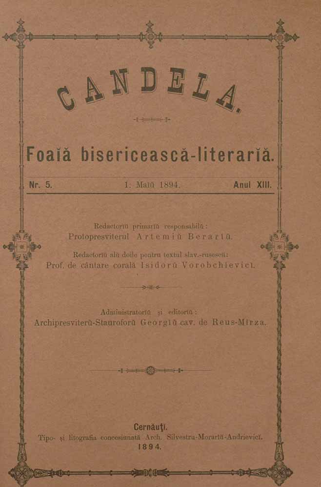 Candela, XIII, nr. în TOM: 5, mai, 1894, Foaiă bisericească-literariă