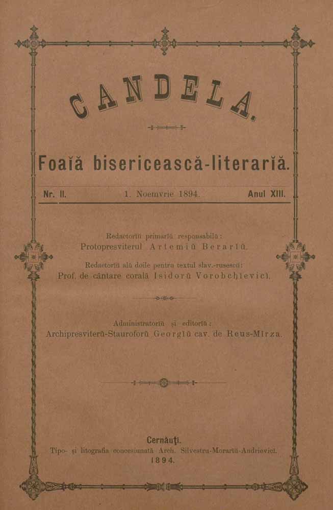 Candela, XIII, nr. în TOM: 11, noiembrie, 1894, Foaiă bisericească-literariă