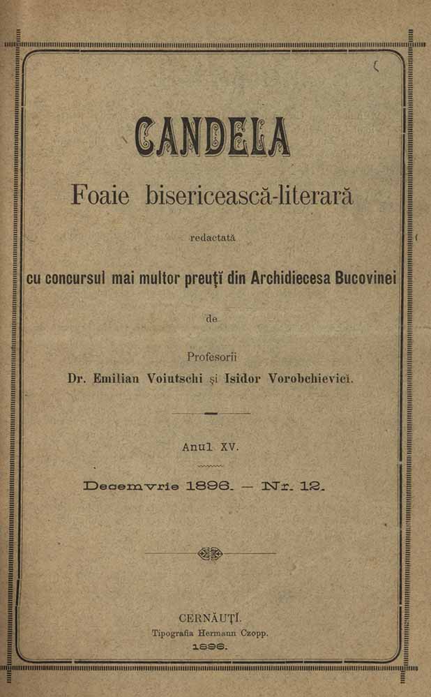 Candela, XV, nr. în TOM: 12, decembrie, 1896, Foaie bisericească-literară