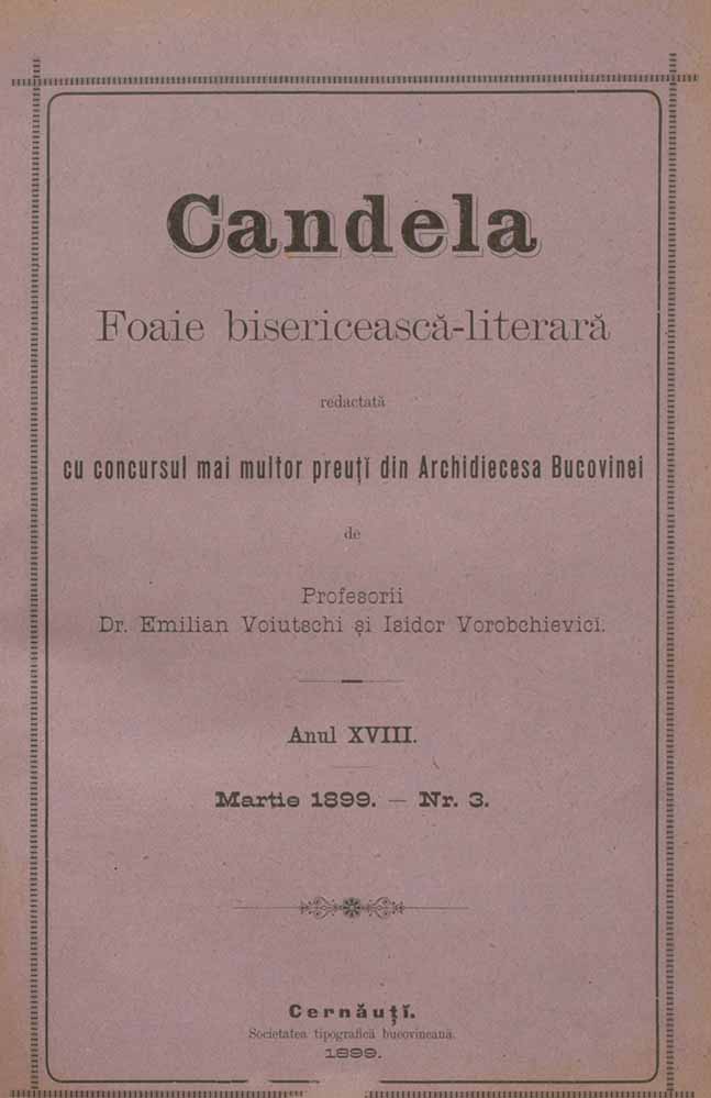 Candela, XVIII, nr. în TOM: 3, martie, 1899, Foaie bisericească-literară