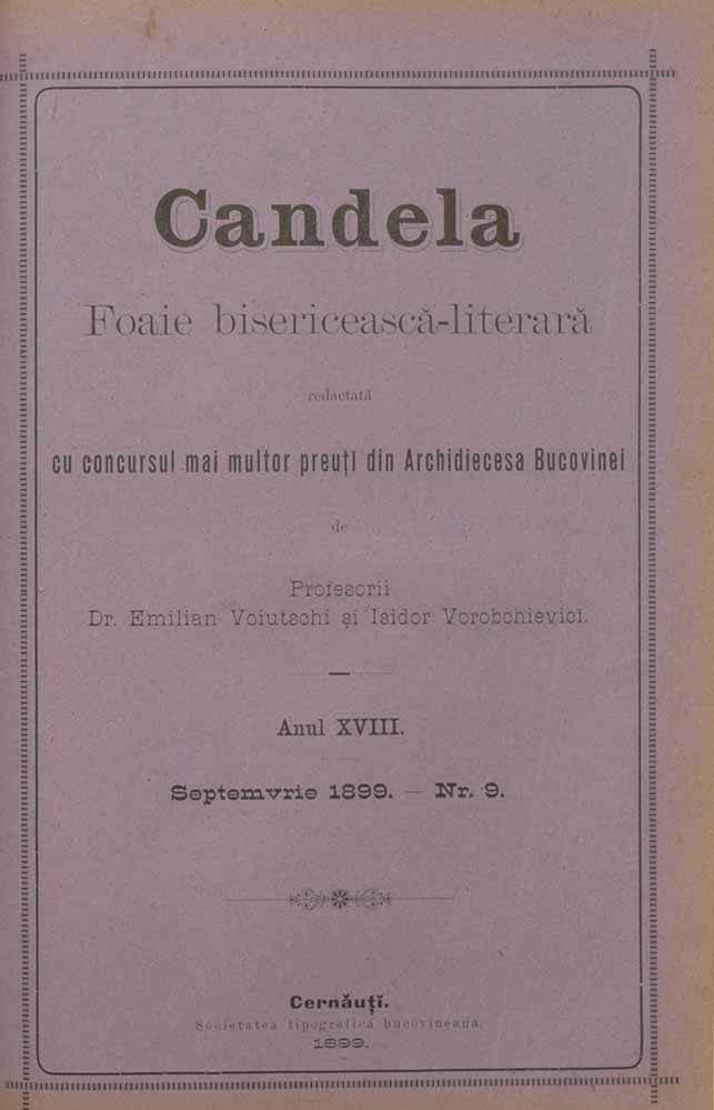 Candela, XVIII, nr. în TOM: 9, septembrie, 1899, Foaie bisericească-literară