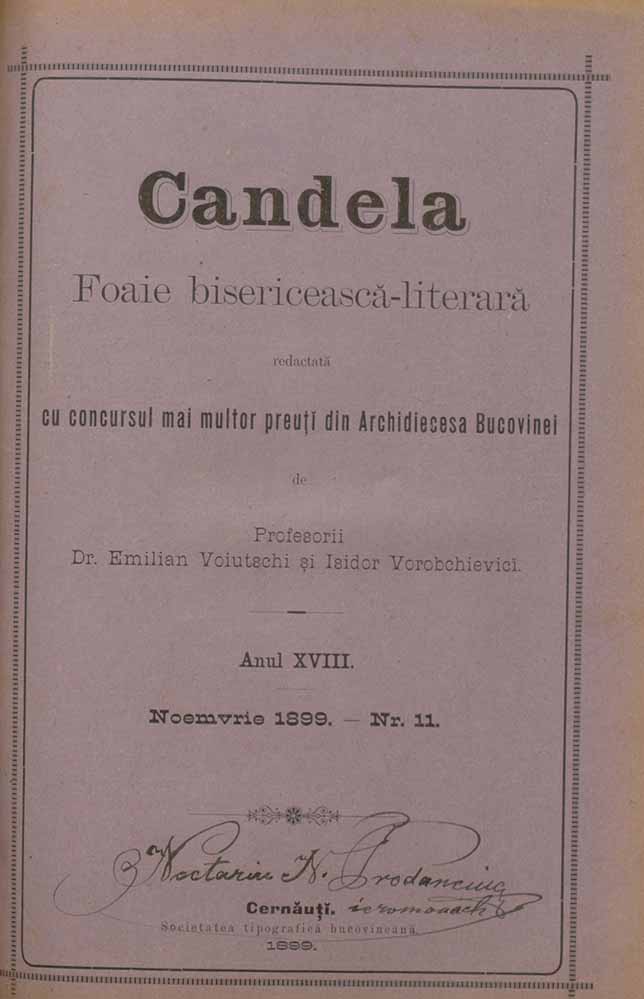 Candela, XVIII, nr. în TOM: 11, noiembrie, 1899, Foaie bisericească-literară