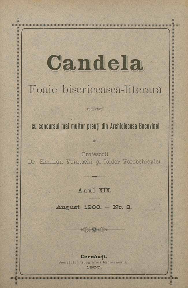 Candela, XIX, nr. în TOM: 8, august, 1900, Foaie bisericească-literară