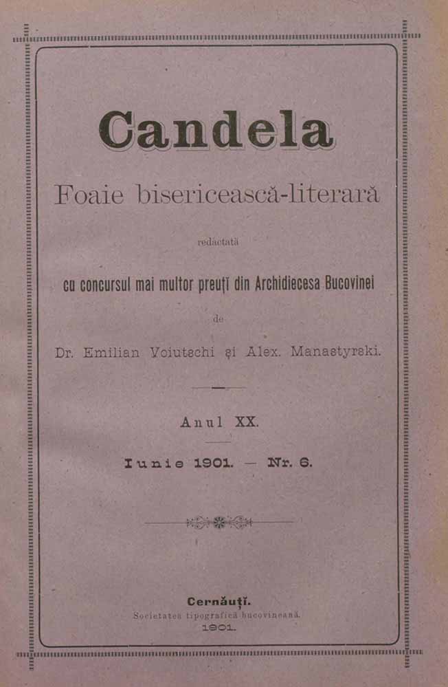 Candela, XX, nr. în TOM: 6, iunie, 1901, Foaie bisericească-literară