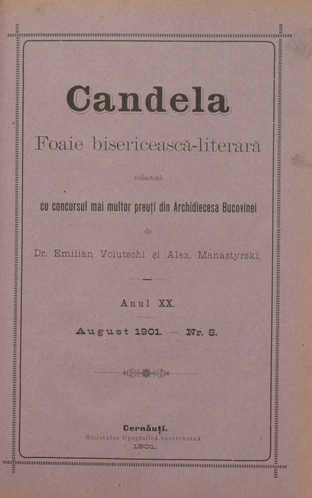 Candela, XX, nr. în TOM: 8, august, 1901, Foaie bisericească-literară