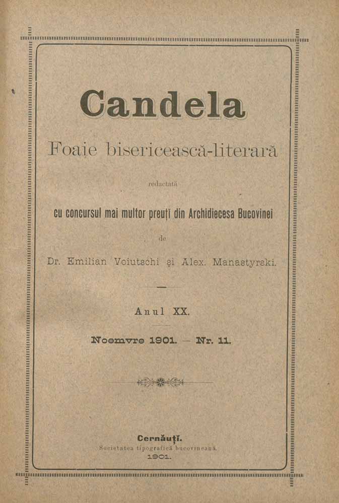 Candela, XX, nr. în TOM: 11, noiembrie, 1901, Foaie bisericească-literară