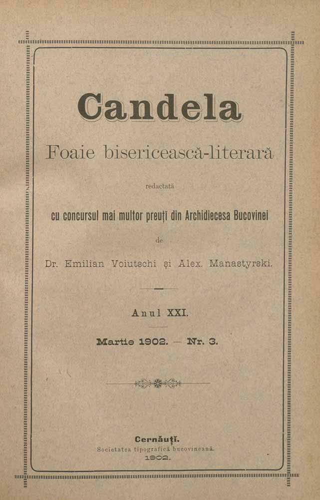 Candela, XXI, nr. în TOM: 3, martie, 1902, Foaie bisericească-literară
