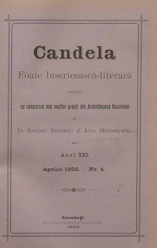 Candela, XXI, nr. în TOM: 4, aprilie, 1902, Foaie bisericească-literară