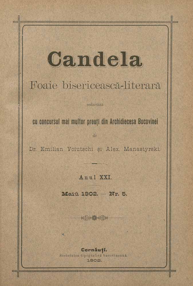 Candela, XXI, nr. în TOM: 5, mai, 1902, Foaie bisericească-literară