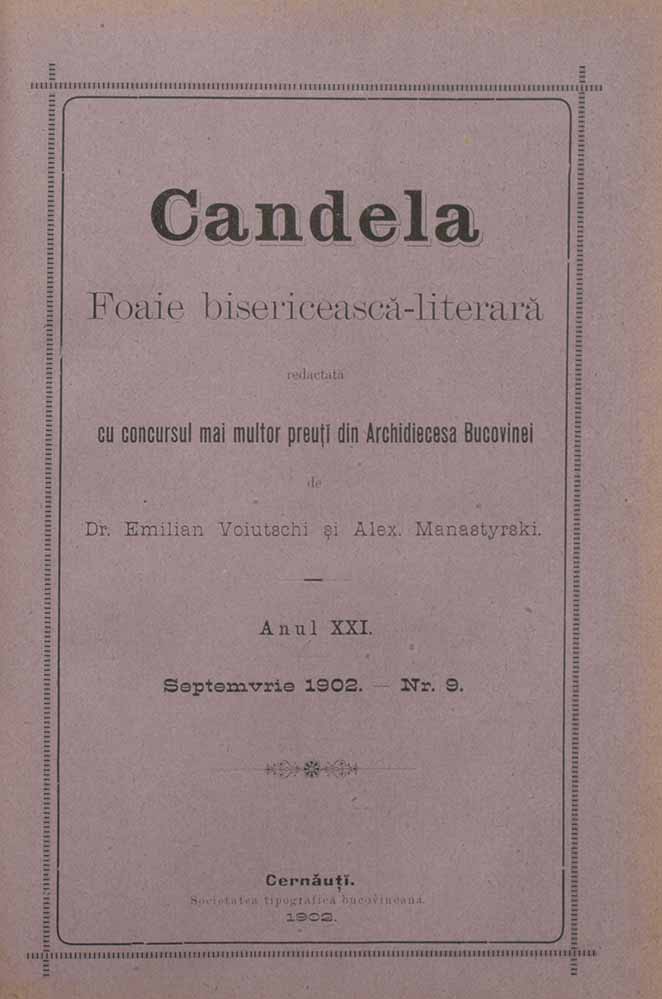 Candela, XXI, nr. în TOM: 9, septembrie, 1902, Foaie bisericească-literară