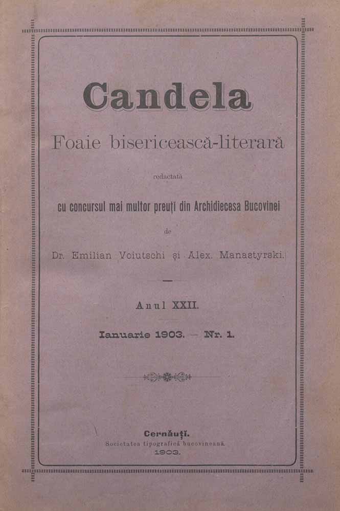 Candela, XXII, nr. în TOM: 1, ianuarie, 1903, Foaie bisericească-literară