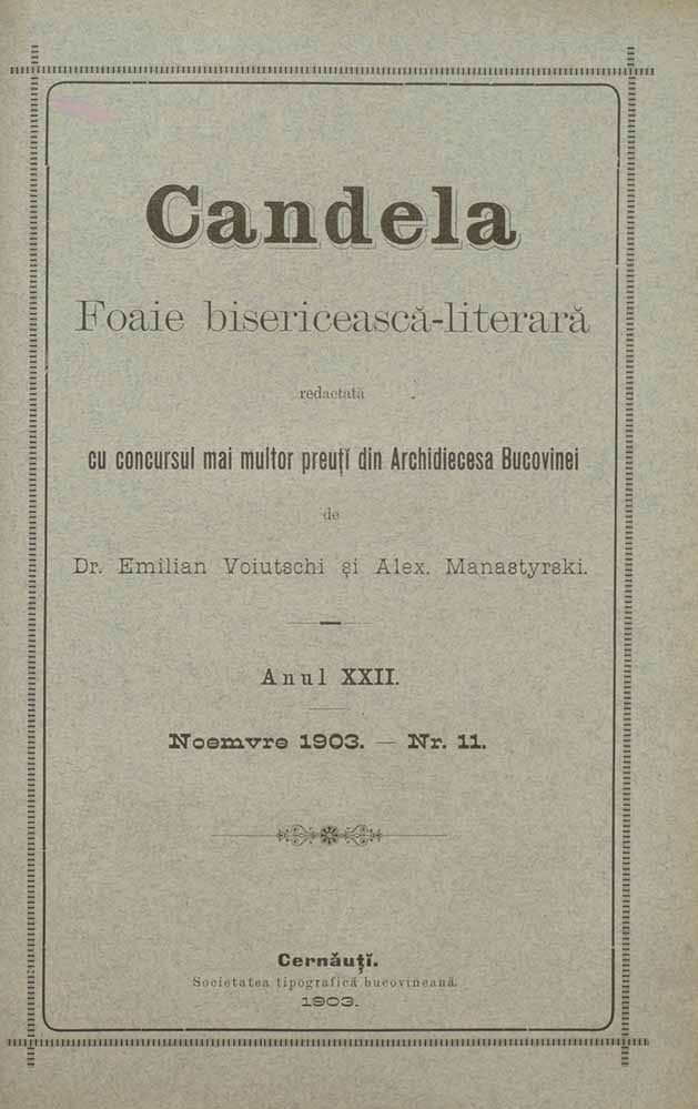 Candela, XXII, nr. în TOM: 11, noiembrie, 1903, Foaie bisericească-literară