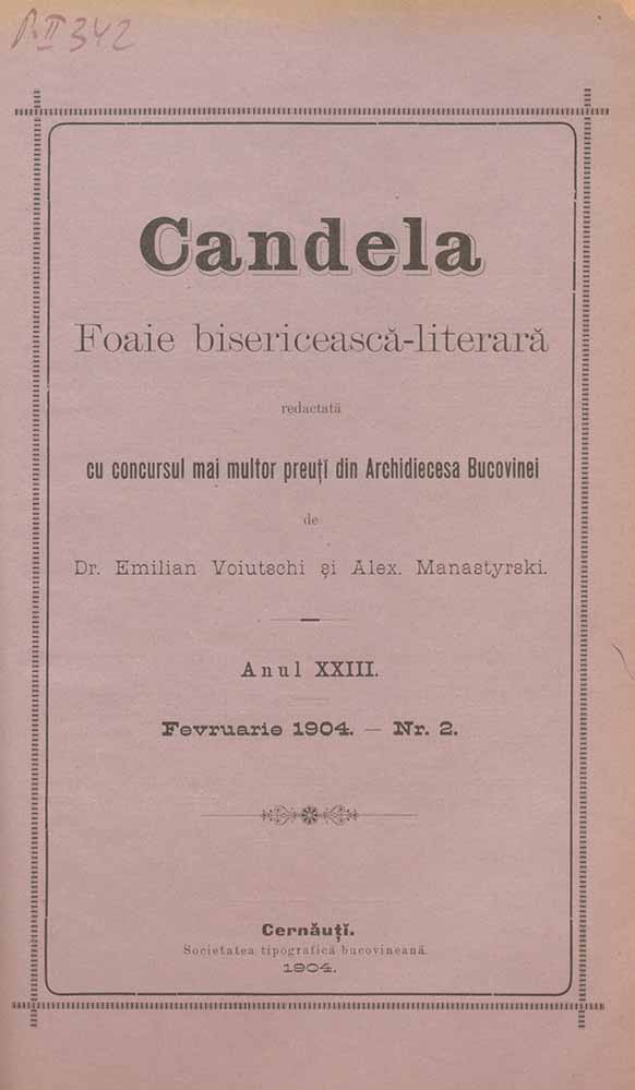 Candela, XXIII, nr. în TOM: 2, februarie, 1904, Foaie bisericească-literară